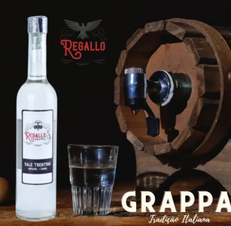 Regalo significa presente e o nome da Regallo Destilaria tem origem neste significado que brinca com o nome da família dos fundadores, Regalin. Uma homenagem do presente que receberam de seus ancestrais: a tradição de mais de cem anos na produção de vinhos e destilados.
