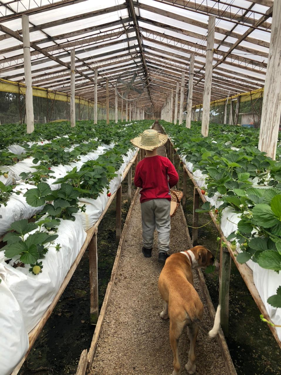 Um dia, enquanto ainda organizava a nova vida, ela resolveu que não iria apostar no aviário, mas plantar morangos. “Eu decidi do dia pra noite, mudei de ideia. Comecei a pesquisa estufas, estudei e fiz. Plantei os morangos em junho, em uma estufa só, e em outubro já tinha para vender”, conta. A intenção era vender na feira, mas isso também não saiu exatamente como o planejado. As pessoas passaram a procurar a fruta lá na propriedade mesmo e a pedir outras coisas para comer. Assim, nasceu o CaminhoS do Morango, um negócio que, hoje, além de sustentar Elisana, acabou com qualquer necessidade de terapia.