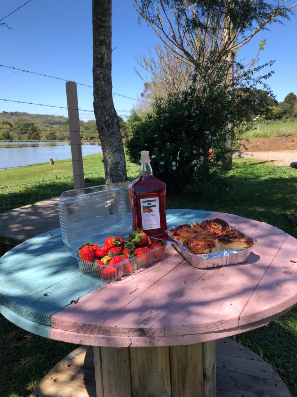 O primeiro produto a partir do processamento do fruto foi a geleia. Depois, veio o licor. E então as sobremesas. A tudo isso, se somaram almoços, petiscos e, é claro, muita experiência perto da natureza. A propriedade tem 10 hectares, uma vista linda, árvores e paz. “As pessoas vêm, já param na estrada para fazer fotos e, ao chegar aqui, aproveitam um dia sob as árvores, com alimentação e sobremesas de morango, claro”, acrescenta a proprietária. É possível também visitar a estufa, conhecer o processo e até comer o morango colhido no pé.