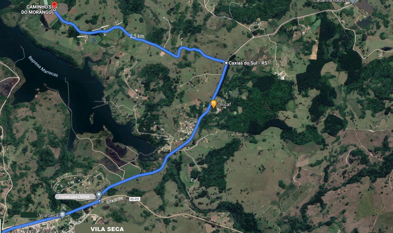 Endereço: Estrada Municipal Volmir Citon, Vila Seca. Segue Rota do Sol destino Caxias do Sul à Vila Seca. Quando chegar no distrito pegue a esquerda a Estrada Municipal Volmir Citon à caminho de Criúva. Siga aproximadamente 3km e dobre a esquerda tem uma placa sinalizando (até aqui caminho todo pavimentado). Siga mais 2,5 km, de estrada de chão até chegar no local. Distância do Centro de Caxias do Sul, Praça Dante é 31km.