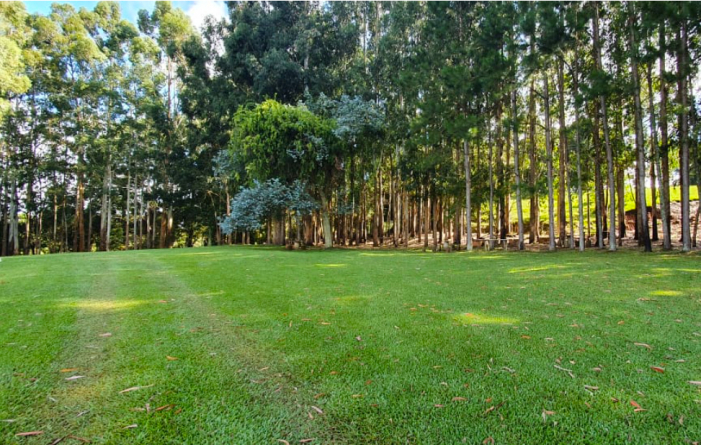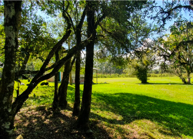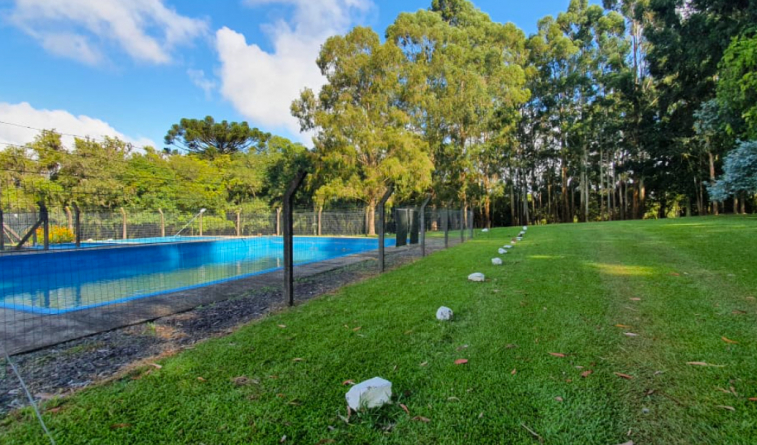 Espaço oferece sombra, piscina, churrasqueira e muita paz