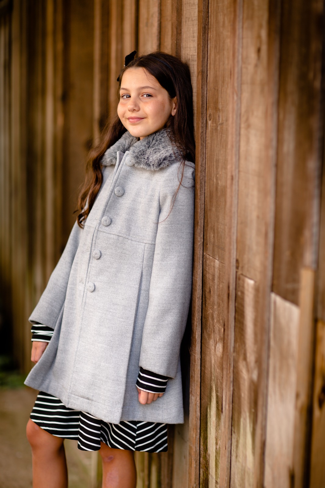 Gio by Nina e Gio by Nino trabalham com casacos em lã para os pequenos, dos tamanhos 1 ao 16 e vestidos de festa.