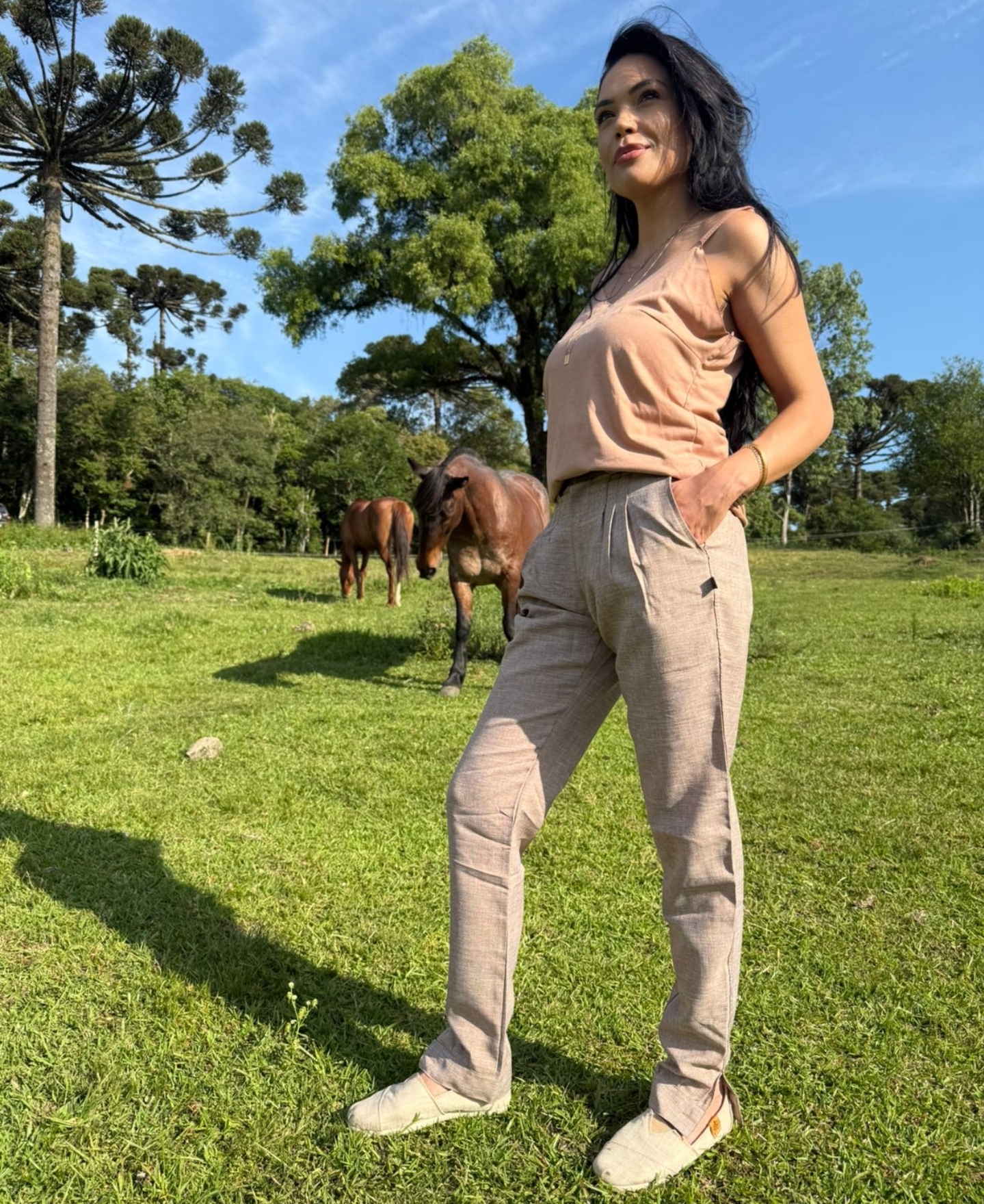 Além da produção, Eliane também participou de eventos tradicionalistas, rodeios e feiras, o que foi fundamental para ampliar contatos, entender o público e aprimorar continuamente os produtos. Esse contato direto com quem veste a tradição permitiu ajustar modelagens, materiais e acabamentos, sempre com atenção à qualidade e ao respeito pela cultura gaúcha. Outro diferencial importante é a linha de personalizados. A empresa desenvolve peças exclusivas para CTGs, entidades e empresas que desejam criar camisas e vestimentas com identidade própria, mantendo o estilo e os valores da tradição gaúcha. Cada projeto é pensado de forma próxima e colaborativa, respeitando a história de quem veste e representa aquele traje.