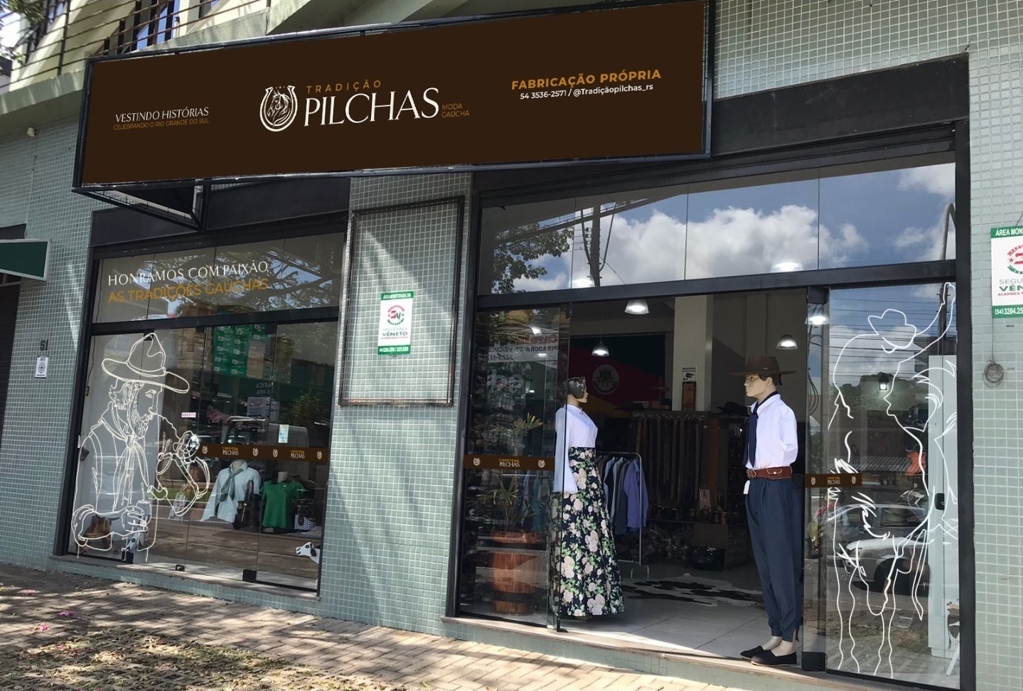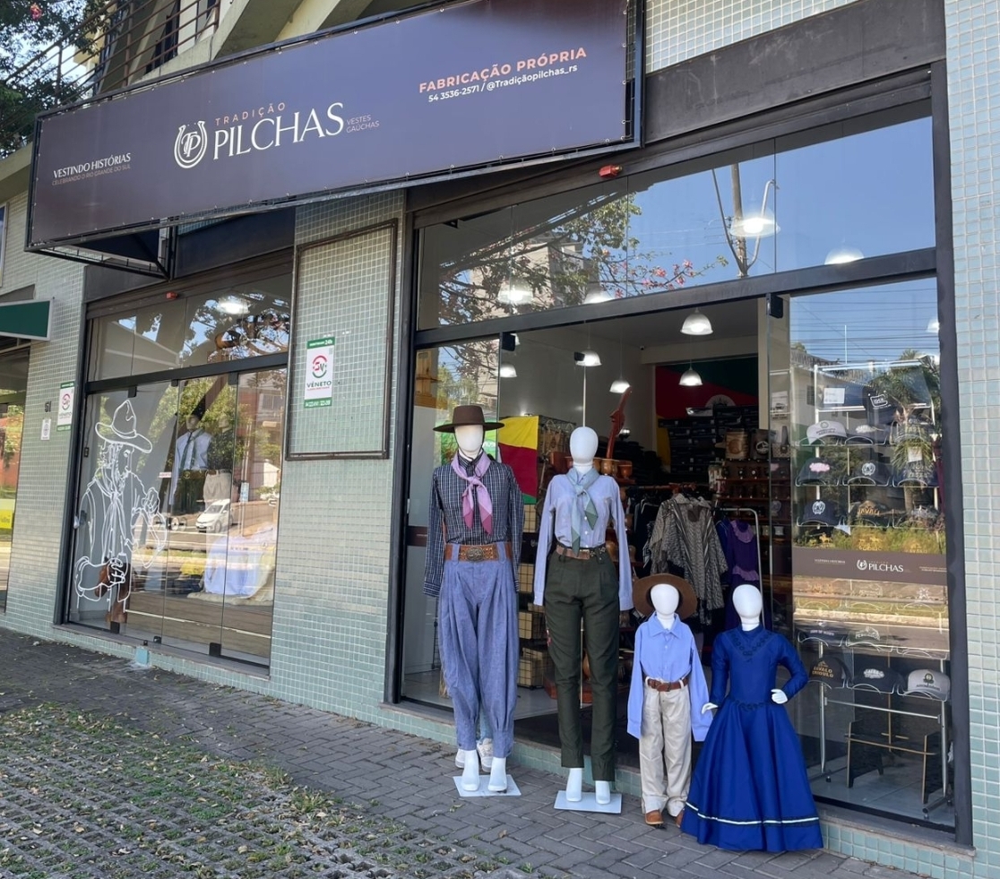 Um dos grandes sonhos de Eliane era abrir uma loja ao consumidor final. A abertura da loja, em meados de 2021, marcou um novo momento para a Tradição Pilcha, ao permitir a venda direta ao consumidor final e aproximar ainda mais o público dos produtos e da história da marca. A produção própria — que inclui bombachas, vestidos, saias, camisas, lenços e uma ampla diversidade de vestimentas tradicionais masculinas e femininas, adultas e infantis — passou a estar disponível ao público em um espaço pensado para valorizar a cultura gaúcha. Ao mesmo tempo, a loja agregou uma curadoria de produtos de parceiros, como botas, alpargatas, cuias, bombas e diversos acessórios que integram o universo tradicionalista. Mais do que um ponto de venda, a loja é um espaço de encontro com a cultura: um lugar onde os produtos carregam essência, identidade e história. Ao chegar na loja, além das compras, o visitante tem a oportunidade de degustar um tradicional chimarrão.