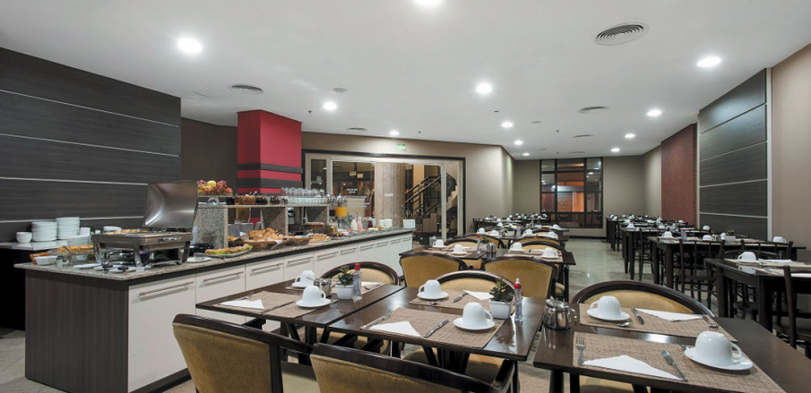 E para quem optar por saborear uma das preferências nacionais, o café da manhã de hotel. O restaurante serve café da manhã de segunda a sexta-feira das 6h às 10h, e aos finais de semana das 6h30 às 10h30. O espaço comporta 60 pessoas