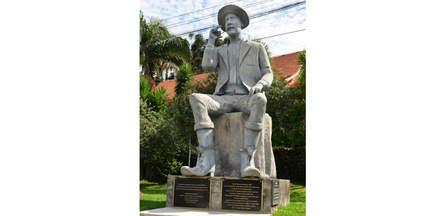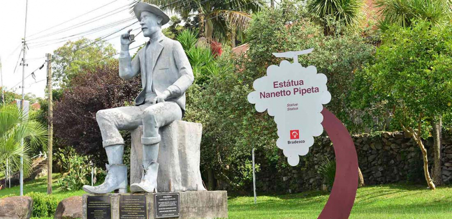 O monumento/estátua tem três metros de altura e está localizado em frente à Réplica da Caxias de 1885. Ele é resultado de uma parceria entre Prefeitura de Caxias do Sul, Festa da Uva e Correio Riograndense. A estátua tem três metros de altura e está localizada no Parque da Festa da Uva.