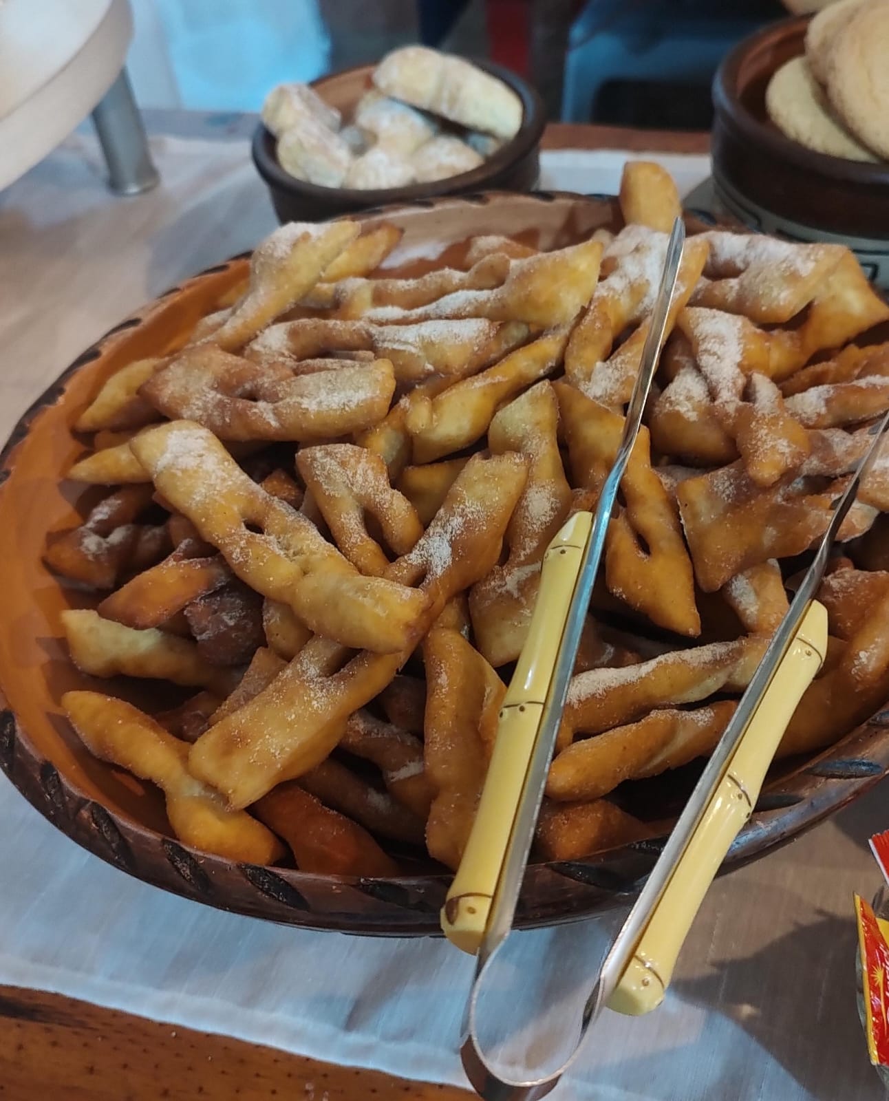 O cardápio é pensado e preparado por ela, que sempre gostou de cozinhar. Nair faz questão de reforçar que não é um café colonial e nem campeiro, mas, sim, caseiro. “É comida de casa de vó, tenho bolo, grôstoli, rosca, bolo frito, pastéis, paçoca de pinhão e outras delícias. Monto as mesas de forma variada, escolhendo uma fritura e acompanhamentos”, detalha. Pão de abóbora, doguinho, rosca de milho também estão entre as muitas opções.