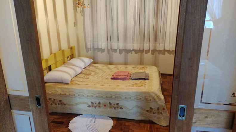 Os peregrinos que chegam na hospedagem da Famiglia Pezzi encontram bem mais do que um lugar para descansar durante o trajeto do Caminhos de Caravaggio. Por lá, há um acolhimento carinhoso que inclui jantar junto com a família, conversar e trocar boas energias. “O peregrino é recebido na casa onde meus pais moravam, nós jantamos e tomamos café da manhã com eles, é uma recepção familiar”, diz Daiane Pezzi, proprietária ao lado dos pais, Jaime e Loiva Pezzi.