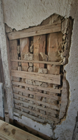 Na época em que viveu lá, a casa já tinha algumas partes danificadas, mas ela lembra bem das paredes muito largas e do telhado de tabuinhas. No início da história da edificação, era só pedra e barro, os tijolos foram colocados depois, em reformas que foram necessárias. As janelas, conforme a antiga moradora, sempre foram de madeira. Uma das curiosidades que ela conta eram dois buracos que ficavam em uma parede virada para a frente da casa: “Na época das revoluções, eles colocavam o olho no buraco de cima, e a espingarda, no de baixo”.