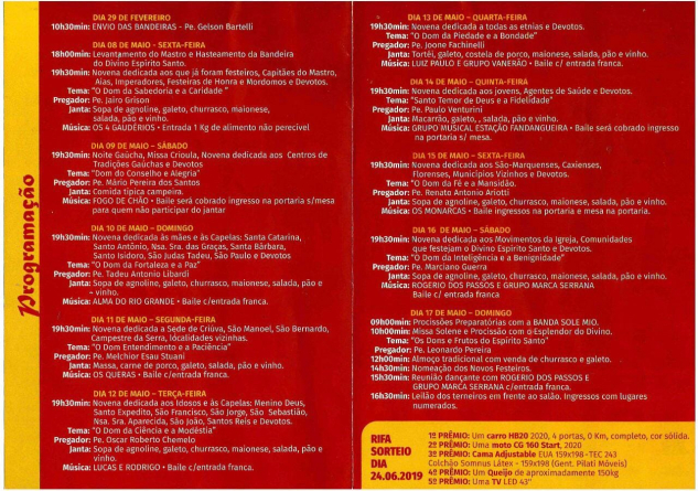 CONFIRA A PROGRAMAÇÃO DA FESTA DO DIVINO DE CRIÚVA (ANTES DA PANDEMIA) - FEVEREIRO A MAIO