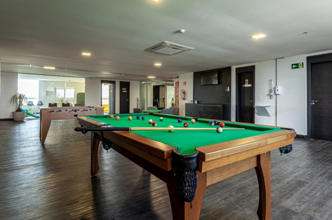 Com serviço disponível para café da manhã e jantar, oferecemos restaurante, bar e lounge, além de área de lazer completa com academia, piscina adulto e infantil cobertas e aquecidas, brinquedoteca com banheiro, sauna úmida e seca, academia, vestiários e sala de jogos.