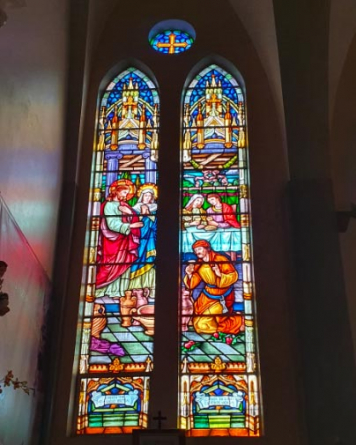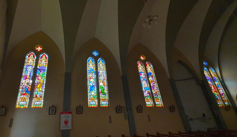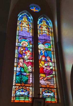 Os vitrais que retratam acontecimentos da vida de Jesus Cristo são um dos destaques da igreja, ao lado das torres, que foram construídas somente nos anos 2000, já que, no projeto anterior, elas haviam sido omitidas. Agenor Boff foi o responsável por projetá-las e teve forte atuação na sua construção. Ele colaborou com o projeto, a pintura externa e a colocação das calhas. O pároco da época era o padre Renato Fantin.