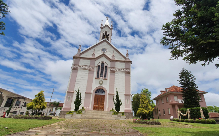 A igreja possui uma mescla de estilos barroco e romano, estilos mais antigos, com intervenções mais modernas. Após a construção da torre e do campanário, inaugurado em 1980, o teto passou a adotar estilo romano. Atualmente, a igreja está passando por uma reforma e deve retomar ao projeto original, conforme expressa o pároco Oumiro Dal Berto. A parte externa já está concluída, e a interna segue em obras.