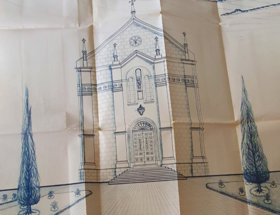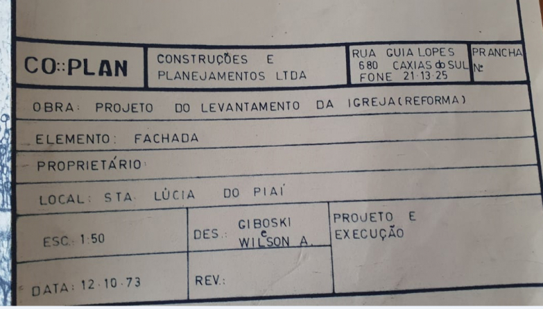 A respeito da obra da igreja, nos arquivos da Paróquia encontra-se o projeto denominado levantamento da igreja (reforma), com desenho da fachada e data de 12/10/1973. Foi realizado pela CO::PLAN e desenvolvido por GIBOSKI e WILSON A. Há riquezas de detalhes na fachada e no interior.