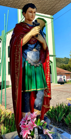 Logo na entrada de Vila Oliva já é possível perceber qual é o santo que a comunidade é devota. Uma estátua de Santo Expedito recebe moradores e visitantes, porém, é preciso voltar um pouco no tempo para contar a história da paróquia, porque nem sempre foi ele que protegeu esse distrito. Conforme o depoimento de Renan Daneluz, a primeira padroeira de Vila Oliva foi Nossa Senhora da Conceição, que chegou trazida pela fé dos portugueses. Um tempo depois, com o início do ciclo da madeira, houve a primeira mudança. “As pessoas que trabalhavam na serrarias queria que a padroeira fosse Santa Catarina e logo no começo do desenvolvimento desse setor, quando ainda eram poucas serrarias, eles fizeram uma pequena capela em honra à santa”, conta ele.