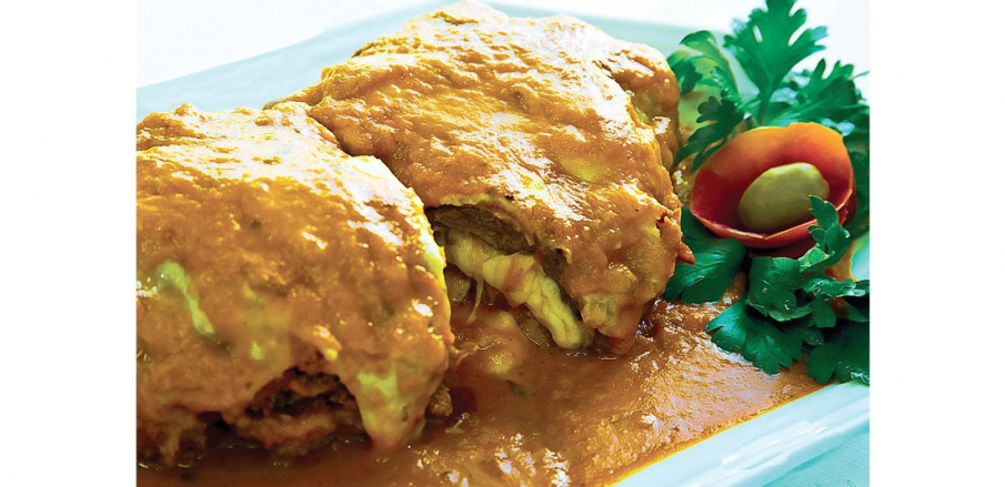 28. Filé Grelhado com Queijo, Molho Branco e Nozes.