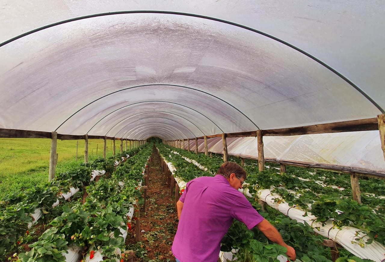 Essa é uma das formas de saborear a produção de Gilmar. A outra é comprar direto na propriedade, com direito a colher no pé e conhecer o processo de cultivo. Para isso, no entanto, também é necessário agendamento. “Somos nós que fazemos tudo, então se a pessoa chegar sem avisar, pode acontecer de não estarmos na propriedade porque saímos para fazer entregas”, detalha. Com agendamento pelo telefone (54) 99943.4566, a receptividade e a experiência estão garantidas, inclusive aos sábados. Programe-se e pegue a estrada!