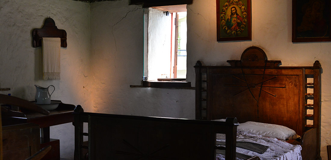 A casa é construída quase em sua totalidade de pedras basálticas rejuntadas com barro, com aberturas de pinho fixadas em tijolos artesanais. No primeiro pavimento encontram-se uma sala e a cozinha, e um forno para pão do lado externo. O pavimento superior era o antigo dormitório.