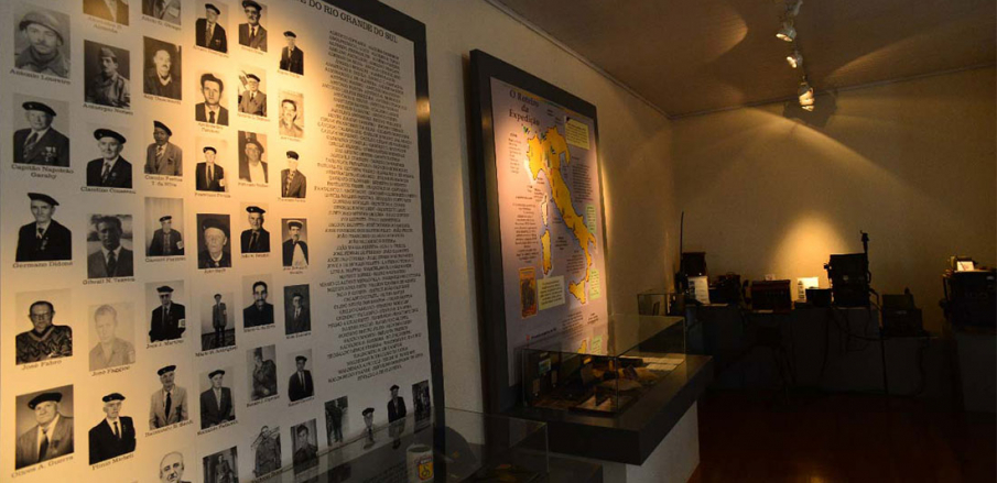 Fotografias, documentos, objetos de uso pessoal, armas, uniformes e equipamentos doados pelo ex-combatentes formam o conjunto de aproximadamente 1.000 elementos expostos no primeiro pavimento. A contextualização histórica no âmbito internacional, nacional e regional é realizada por meio de fotografias, textos e trechos de depoimentos pessoais daqueles que estiveram presentes nas batalhas.