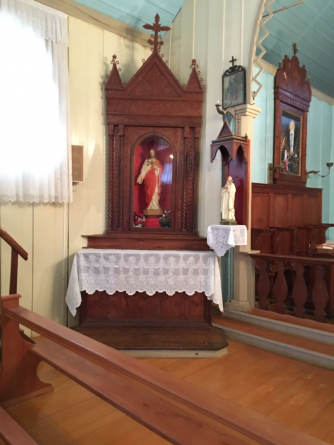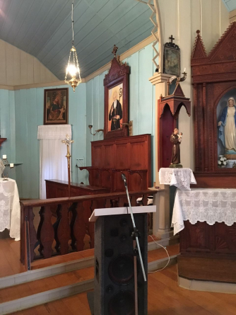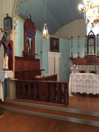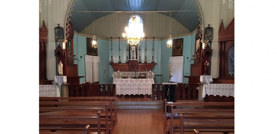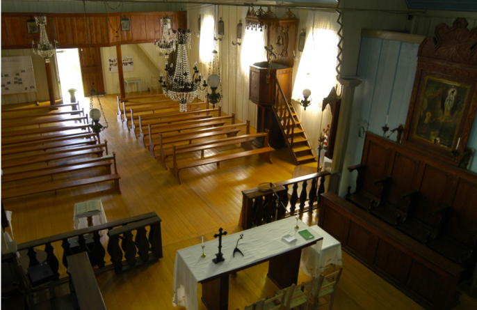 À igreja de Nova Camaldoli construída em madeira está conservada e com suas características originais, o altar esculpido em madeira, sem o uso de pregos, como as construções da época.
