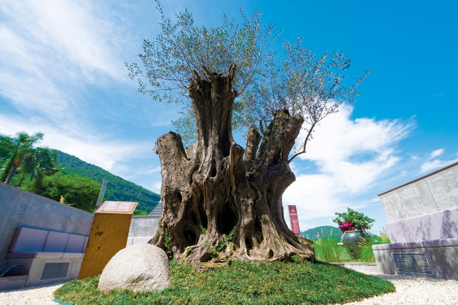 Oliveira histórica: um verdadeiro símbolo vivo, com mais de 550 anos, que imprime imponência e presença ao espaço.