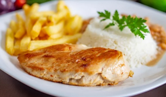Frango na chapa, acebolado ou à milanesa