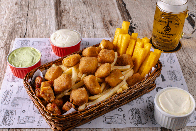 Conta com um cardápio de lanches, petiscos, pratos executivos, à la carte, sobremesas e aperitivos, além do buffet de maioneses com oito sabores disponíveis para o cliente degustar à vontade.