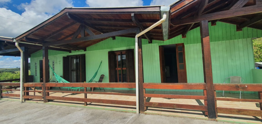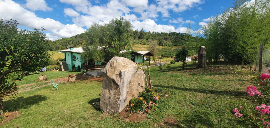 A propriedade está ao lado da estrada e cercada de verde e plantações com amplo espaço para relaxar e descansar. Local tranquilo para dormir e, ao acordar, há o cantar dos pássaros.