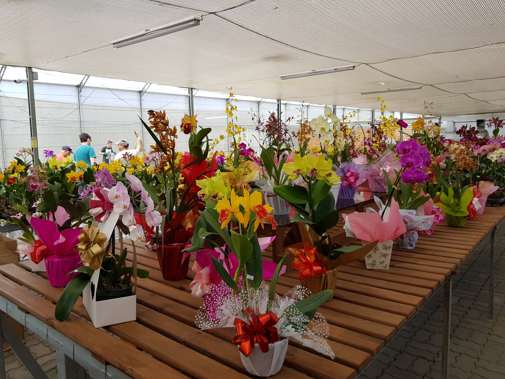A matriz fica em Caxias do Sul, no distrito de Vila Cristina, e vale muito a sua visita. Por lá, ele a esposa, Cassiane Rech, mantêm boa parte da produção de orquídeas. Somando as duas unidades, são produzidas 600 variedades de 22 espécies. As principais são Cymbidium, Cattleyas e Dendrobium. A abertura de uma filial em outro lugar tem tudo a ver com o clima, já que algumas variedades precisam do clima de altitude de Garibaldi. “Lá, temos mais as plantas asiáticas”, detalha Eleandro.