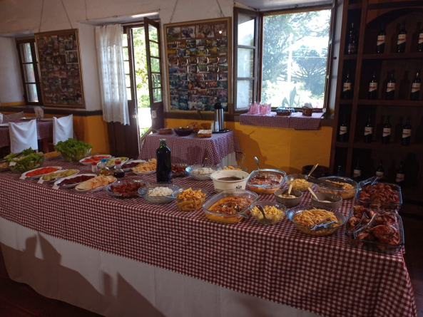 Só por isso, já valeria o passeio, mas há muito mais. Apresentações culturais fazem parte da programação. Lucas e o seu primo, Ismael, são os responsáveis pela música oferecida aos visitantes. "Eu toco violão e o meu primo toca gaita”. Em terra de italianos, é claro que não pode faltar a gastronomia. Além do restaurante, que precisa de um mínimo de 30 pessoas para o almoço e também recebe eventos fechados, há produtos coloniais. “Oferecemos chimias, licores, marmeladas, tudo feito na propriedade. Já o vinho compramos e revendemos”, explica Lucas. Na época da safra, é possível degustar uva embaixo dos parreirais, e a dica dele é programar esse passeio para fevereiro. A propriedade ainda tem algumas frutas cítricas, como a bergamota, por exemplo, que dá no inverno, então sempre é tempo de ir até lá.