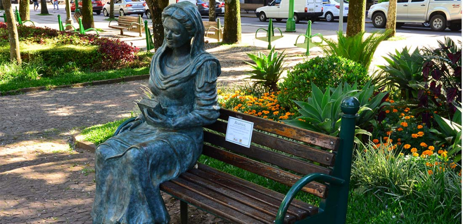 Ícone que dá nome à praça, o busto do poeta italiano Dante Alighieri, autor de A Divina Comédia, completou 100 anos em 2004. Em 2015, ganhou companhia de escultura de Beatrice Portinari. Outros bustos e monumentos: Busto Júlio de Castilhos, Monumento à Liberdade, Monumento ao Duque de Caxias, Monumento Gigia Bandera. Tem internet WI-FI gratuita.