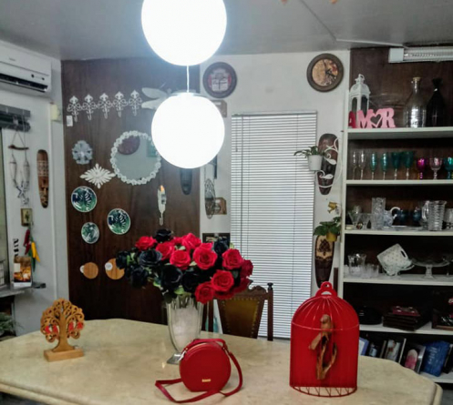 A Prosperitá tem um mix super variado de produtos, passando por louças, canecas, flores, enfeites e decoração. Essa última categoria é a preferida de Saly. “Eu amo decoração, é o que eu mais gosto de comprar. Vou para a feira em São Paulo e já tenho os lugares preferidos, onde sei que vou encontrar o que eu gosto. A feira é enorme, tem mais de mil feirantes, não dá para ver um terço em três dias”, detalha. E conta um segredo: “Em algumas lojas, tem valor mínimo de compra. Quando não fecha com as minhas escolhas, falta uns R$ 200, por exemplo, eu pego outras coisas, mas não coloco na loja para venda, porque só exponho o que eu gosto”.