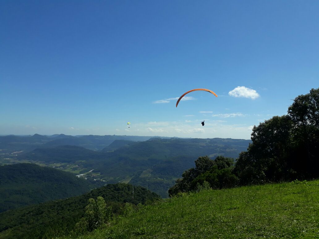 Rampa Sul, tradicional ponto de decolagem de parapente e asa delta, local oposto ao ponto de decolagem Ninho das Águias. Com visual muito bonito do vale do Rio Cai.