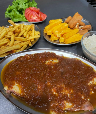 A localização é a mesma desde sempre, na vila, em frente à escola. Há pouco mais de um ano, Valmir e Rosane decidiram incrementar o estabelecimento. Em abril de 2020, o restaurante foi reaberto e hoje tem um salão a mais. Ao lado do espaço onde há duas mesas de sinuca e balcão para quem quiser tomar uma bebida, foi acrescentado um salão para abrigar o restaurante. O Reis atende todos os dias à noite e também para almoço aos sábados, domingos e feriados. “Em dias de semana, servimos ao meio-dia apenas se for um grupo fechado, com reserva, e podemos fazer cardápios especiais como churrasco”, acrescenta.