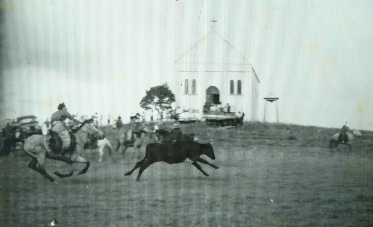 O primeiro torneio de laço foi realizado na cancha que era em frente a Igreja e o salão de Água Azul. O gado para o torneio foi emprestado por: Antônio Vergani, Pompeu Soares e André Bach.