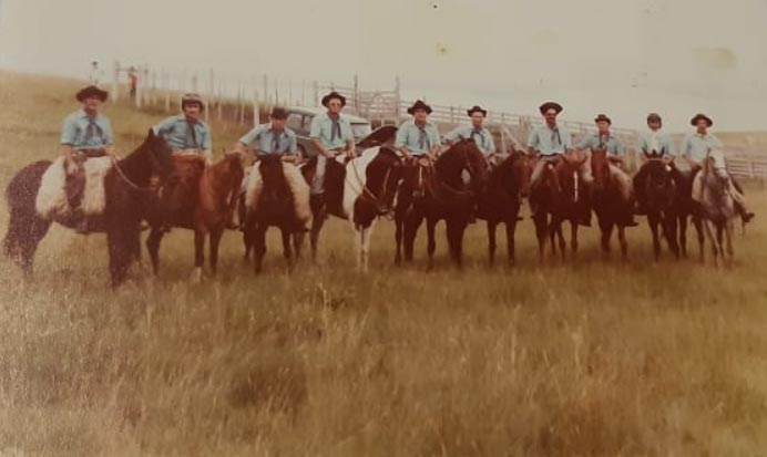 PIQUETE DE LAÇADORES SINUELO DOS PAMPAS DE ÁGUA AZUL - No início do cultivo do gado no RS, viviam soltos no pasto, para apanhar os homens chamados de peões montados em seus cavalos e com corda, chamada de laço, seguia animais paga laçar e prender. Como a expansão do cultivo do gado também foi surgindo o tradicionalismos Gaúcho e competições premiando melhores laçadores. Hoje Piquete de Laçador - são grupos de peões laçadores, com habilidade, treinam geralmente em piquetes e participam de competições chamadas de tiro de laço.