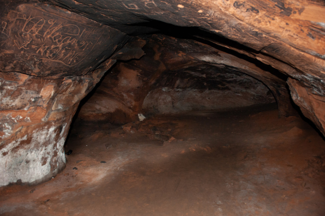 Os moradores da localidade contam histórias de que índigenas viveram ali entocados há centenas de anos. Sobre a área, existem relatos, lendas e fatos que contam a história de que o local foi descoberto após indigenas/bugres terem raptado uma moça e a prendido na toca (os europeus chegaram e tomaram posse das áreas onde vivam os indigenas e esse ato foi uma forma de revolta ou vingança). Com o tempo, as demais mulheres indígenas ficaram com ciúmes da presa e resolveram soltá-la. Ao retornar à sua comunidade, ela revelou o local.