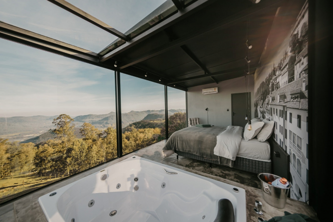 Evandro sempre foi apaixonado pela vida no campo. Por cerca de 10 anos, desbravou o interior de Caxias do Sul em busca de um lugar que tivesse vista e outros atributos que procurava. Encontrou no alto de um morro, no Cerro da Glória. Por lá, construiu uma casa para passar o fim de semana com a família. Foi assim de 2017 a 2020, quando chegou a pandemia. “Como as pessoas não podiam ir para hotel, pensamos que alugar a casa para uma família ofereceria segurança. Então entramos no AirBnb, fizemos o site e começamos a divulgar”, lembra Ketlin.