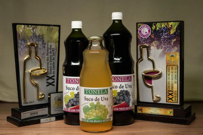 A vontade de Lenor Tonela de produzir o seu próprio suco de uva foi o que deu início à história da Vinícola Tonela, localizada em Vila Seca. Roberto Carlos Tonela conta que seu pai comprou uma panela para fazer suco para consumo próprio. A bebida era produzida a partir da uva que existia na propriedade da família mesmo. “Era um parreiral pequeno, que ainda temos, mas agora não dá mais conta. Para o pai era suficiente”, conta ele. Isso aconteceu em 2007 e, de lá para cá, a fabricação de bebidas derivadas da uva nunca mais parou na família. “Eu vi o pai com a panela e gostei da ideia de fazer suco. Aí comecei a produzir mais, alguns amigos se interessaram pela qualidade e o negócio começou”, completa.
