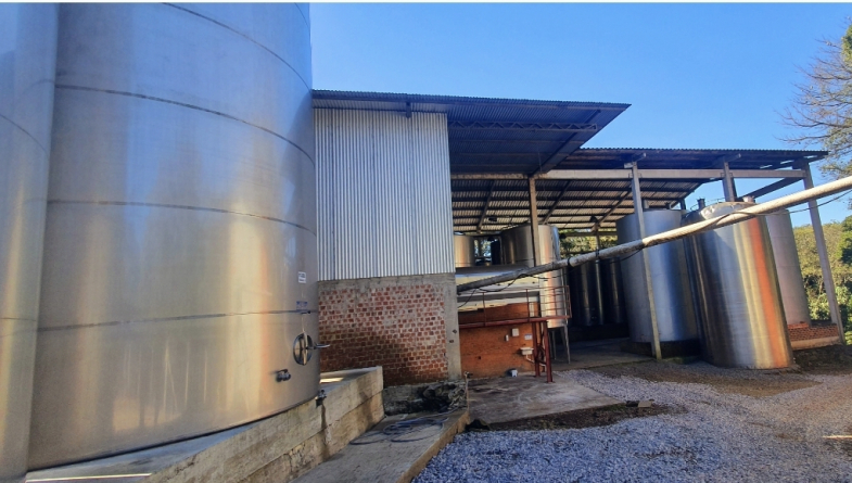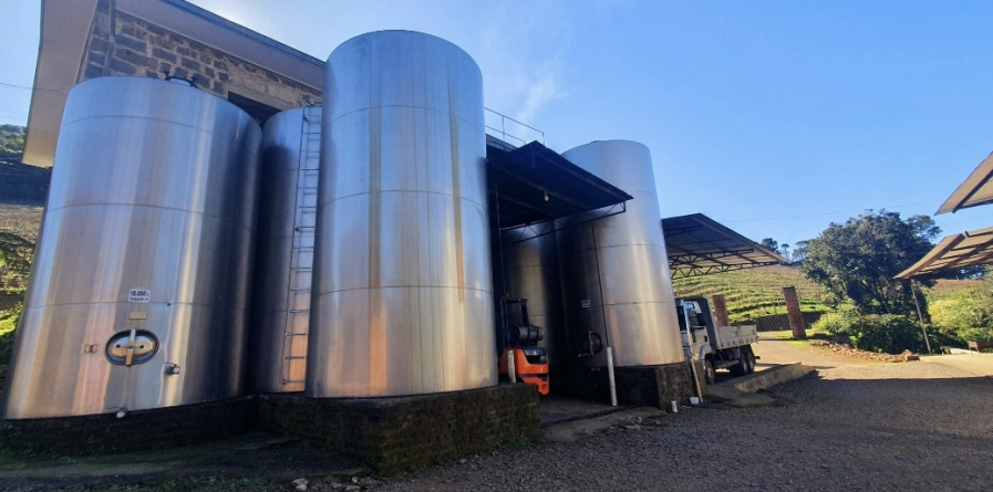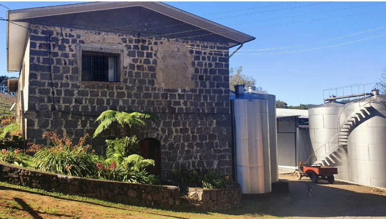 Além de circular pela propriedade quando criança, Rodrigo lembra de entrar em tanques e de vivenciar a rotina dos pais. Hoje, faz parte da equipe que conduz o negócio existente na mesma propriedade onde seus avós faziam o vinho artesanalmente. São 17 hectares de vinhedos, grande parte (90%) da variedade bordô. O restante é de niágara e um pouco de moscato. “O vinho bordô é o mais vendido. Usamos toda a nossa uva e ainda compramos bordô e isabel de outros produtores”, conta Rodrigo. Toda a venda acontece a granel para outras vinícolas, e o produto é transportado em caminhões-pipa. A produção anual está em 1 milhão de litros.