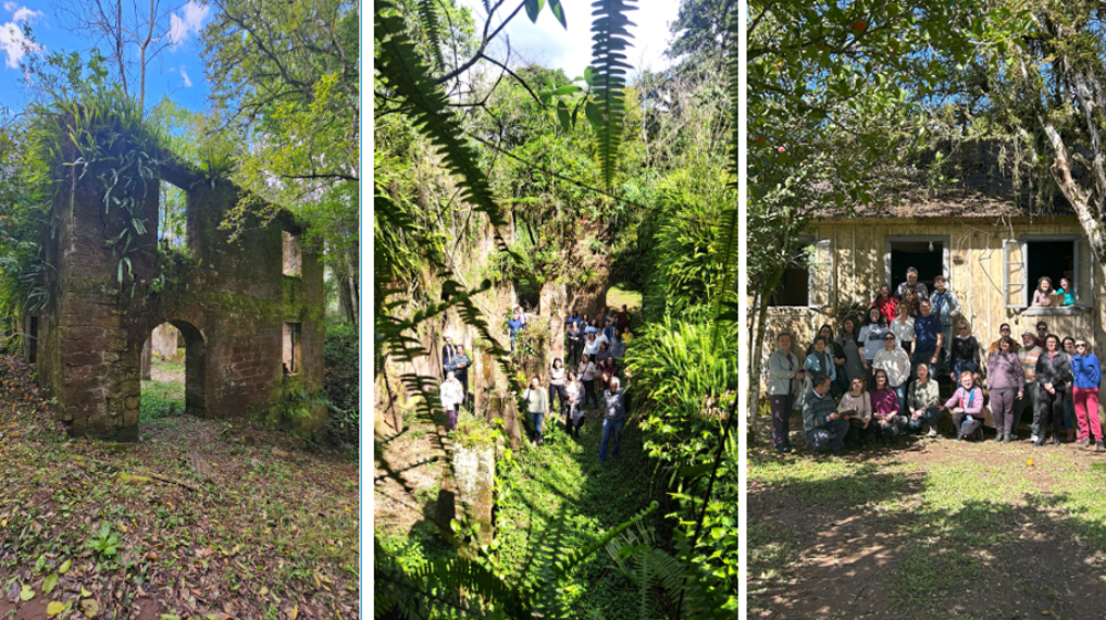 Mais duas paradas ainda aguardavam os participantes desta visita técnica. Primeiro, o grupo visitou uma propriedade que foi da família de Jorge Potter. Acompanhando o grupo, ele contou que, na década de 1970, a residência do pai dele serviu como escola. Ele tinha dois anos na época e lembra que, posteriormente, sua família doou um terreno ao município para que fosse construída a escola que, atualmente, é chamada de Assis Brasil. Ao olhar para a casa onde teve aulas e relembrar toda essa história, Jorge se emocionou. Atualmente, a propriedade, deonominada como Sítio do Moinho, pertence a um casal de fora do Rio Grande do Sul que escolheu aquele lugar para seguir a vida e hoje recebe peregrinos que fazem o Caminho de Caravaggio. Nessa propriedade, também estão mantidas ruínas de um moinho e uma serraria que funcionaram no passado.