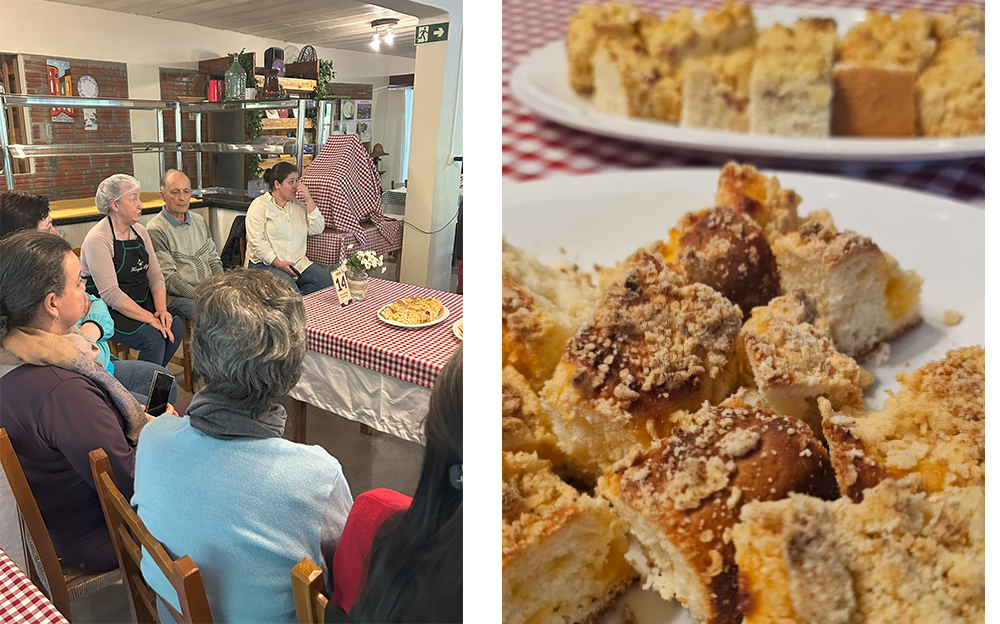 Um casal típico de Vila Cristina — ela, descendente de alemães; ele, de italianos — nos acolheu à mesa, compartilhando histórias das duas etnias que permanecem vivas na região. Entre relatos e memórias, todos puderam saborear uma cuca alemã, vivendo um dia que reflete a tradição e a cultura local. O encontro aconteceu na propriedade da Família Pezzi, Café Colonial, situada às margens da Estrada Rio Branco, também conhecida como Estrada do Imigrante.