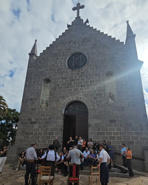Na igreja, Boca de Sino cantou a música de louvação da Festa do Divino, de sua autoria, acompanhado por Gilney Bertussi e Valdir Verona. Clique na foto e confira vídeo.